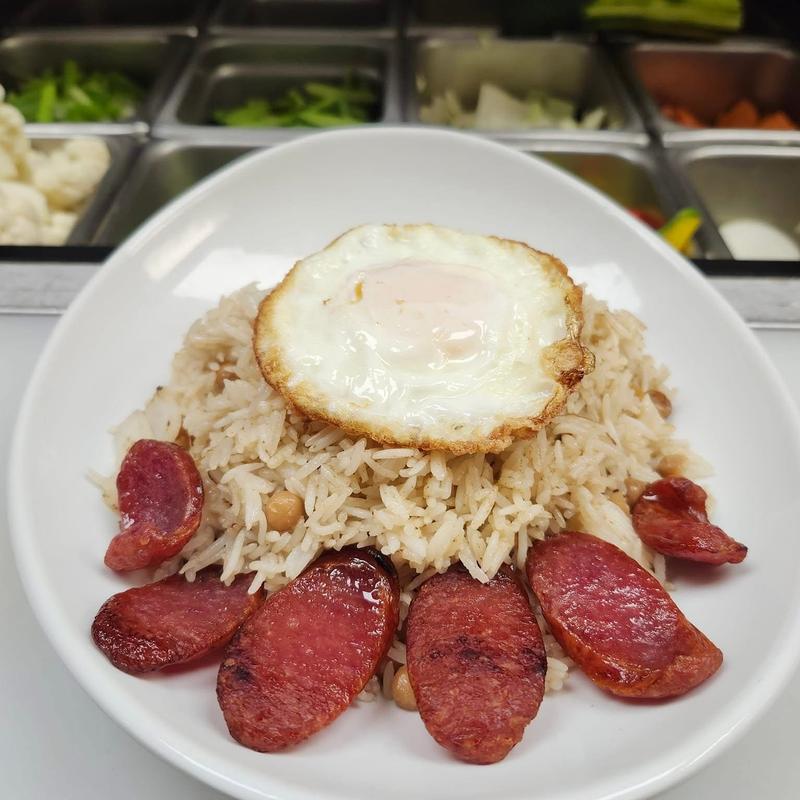 Fried rice with boiled peas is the traditional Burmese recipe and can be optionally topped with fried egg.